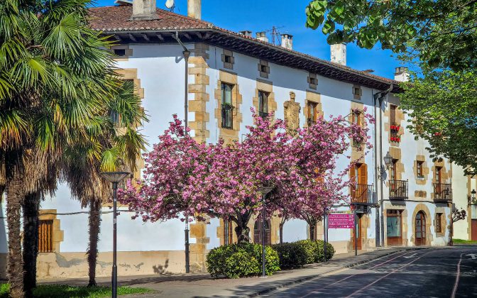 Primavera en Oñati, Cerezo japonés frente al palacio Madinabeitia (S.VIII)
